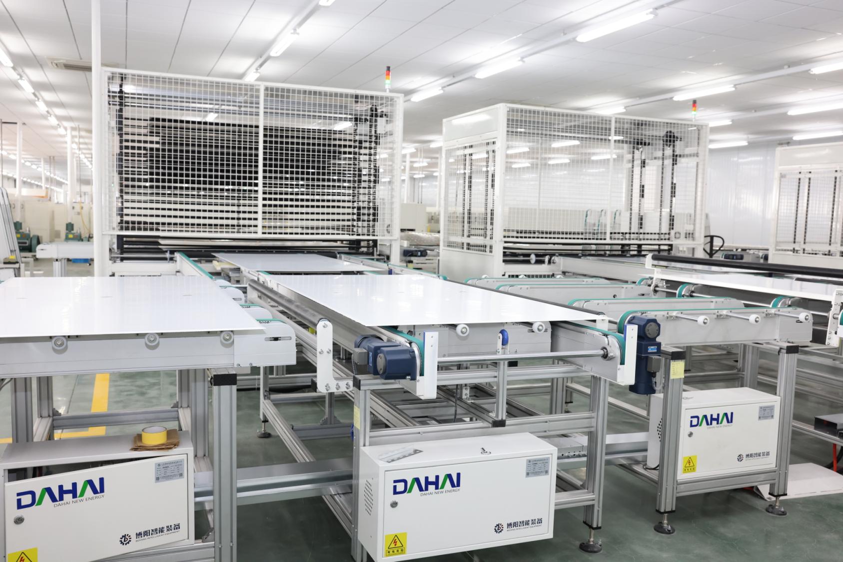為了提高生產(chǎn)效率,確保產(chǎn)品質(zhì)量,東營大海光伏對所有生產(chǎn)設(shè)備進行升級改造,將原來的半自動生產(chǎn)線全部淘汰,新上2條可兼容210尺寸電池的全自動生產(chǎn)流水線,從而降低人工操作的失誤,有效規(guī)避產(chǎn)品的隱裂和內(nèi)在缺陷風險,為組件產(chǎn)品的質(zhì)量提供了充足的保障。
